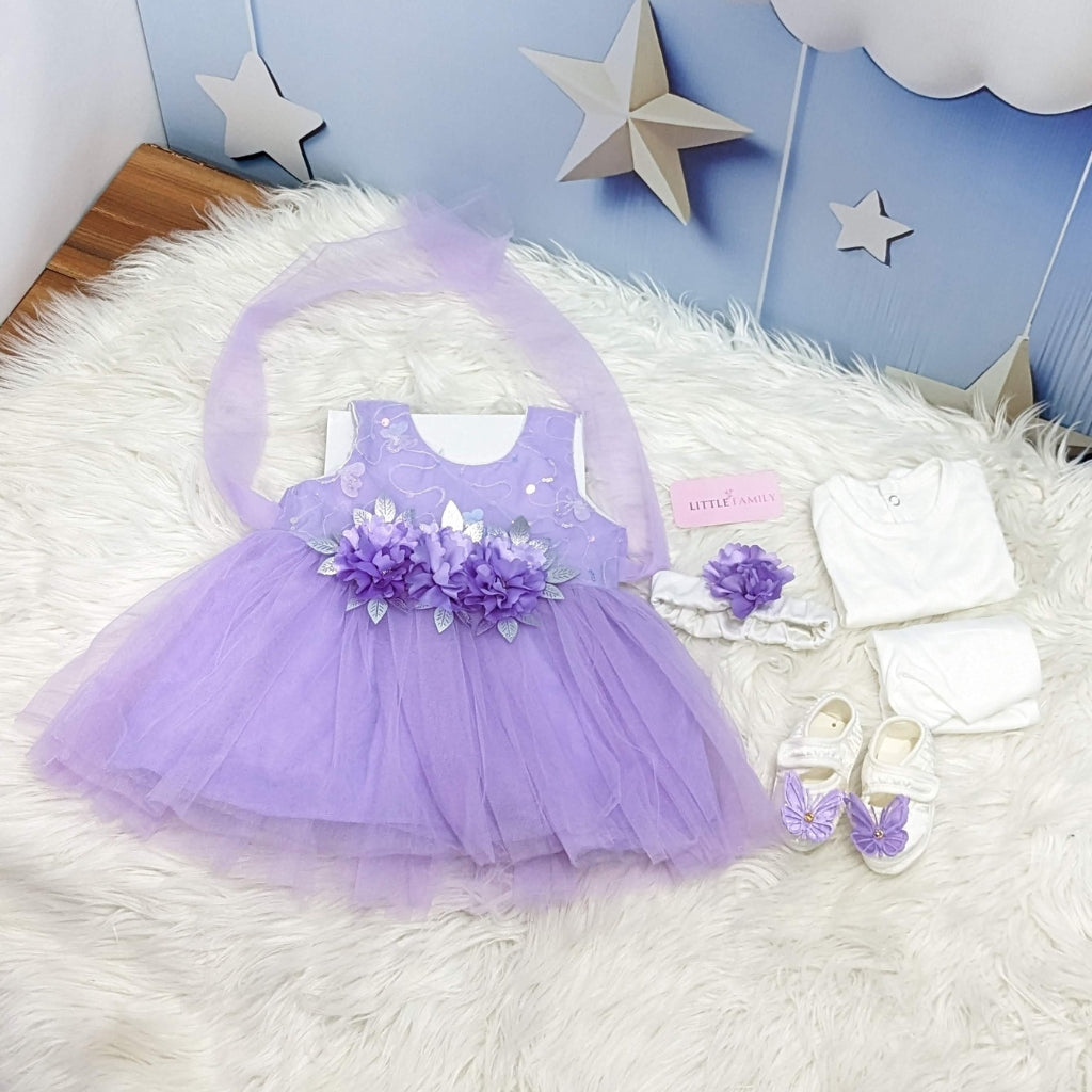 Premium Newborn Baby Frock Set | Purple Butterfly