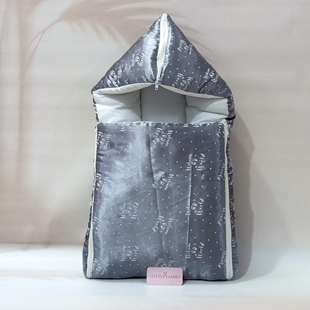 Premium Silk 11-Piece Baby Bedding Set | "Welcome to the World" - (Grey)
