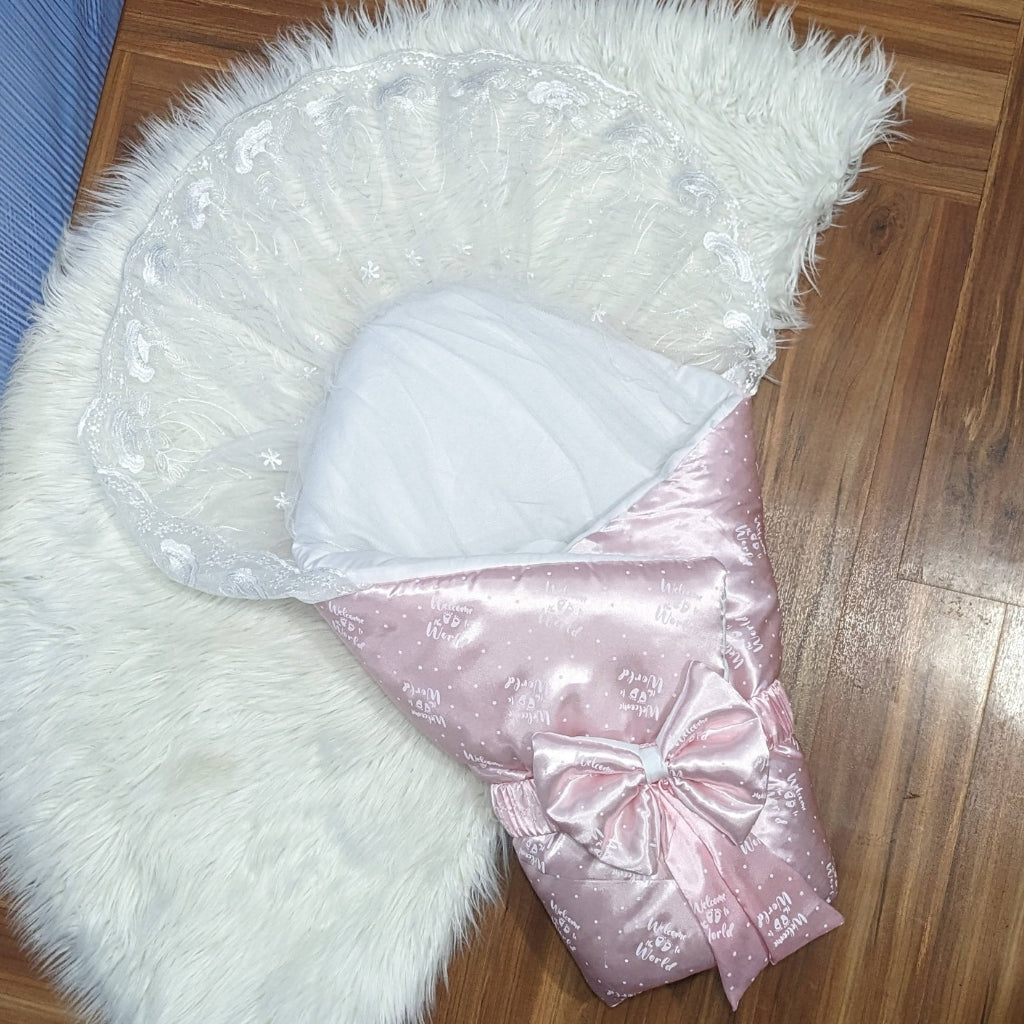 Premium Silk Newborn Baby Carry Nest | "Welcome to the World" - Pink