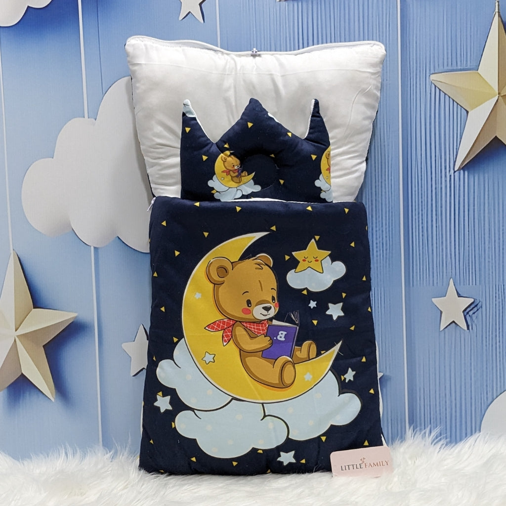 Soft Poly Cotton Baby Carry Nest | Teddy On Moon Edition – Navy Blue