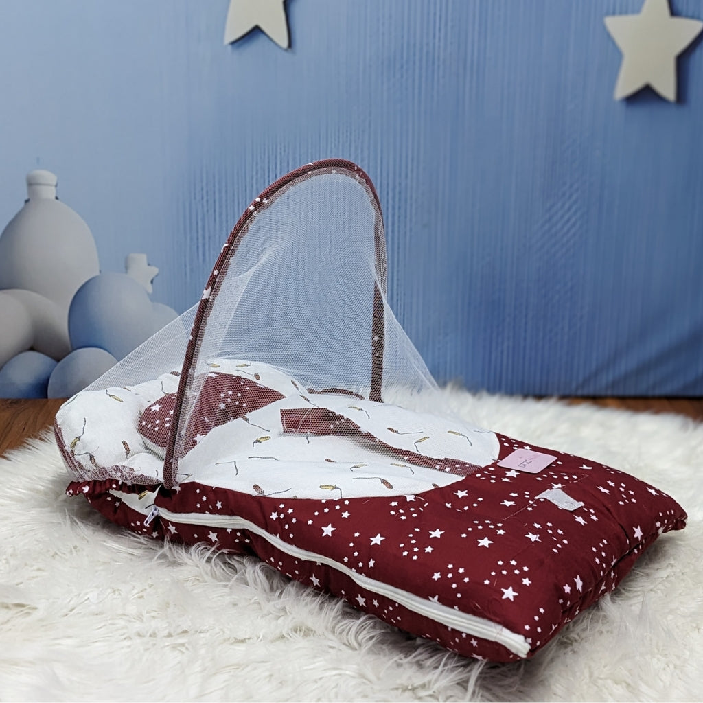 Give your baby the comfort of a gentle embrace and the protection every parent wants. This premium baby nest with net shield is thoughtfully designed to create a soft, secure, and soothing sleeping space for newborns. The breathable cotton satin outer layer paired with a pure cotton inner lining ensures your baby stays comfortable, relaxed, and well-supported throughout rest time.