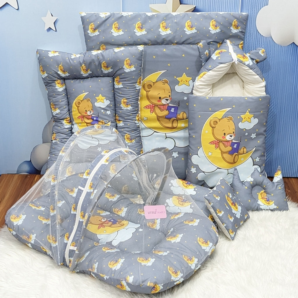 "Teddy On Moon" Baby 8 PC'S Bedding Set - (Grey) | Large