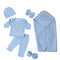 • Complete Newborn Set – Includes swaddle wrap, mittens, and booties